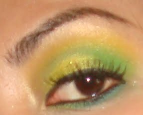 I chose the colors greens and yellows with a pop of turquoise blue-ish for my eyes because those are my favorite summer colors and I matched the look with some purple-y pink lips ^_^ It's super bright and super fun^_^ . Oh and, I have to apologize for the quality of the face pics. Those are still shots from the video.